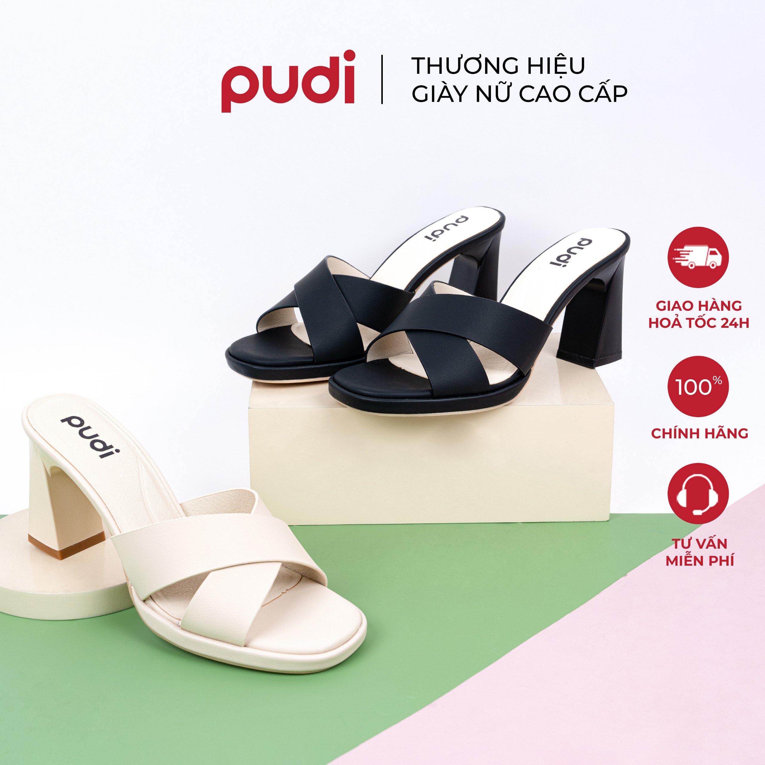 DÉP NỮ QUAI CHÉO |PUDI| ĐẾ ĐÚC, DA CAO CẤP - 9352